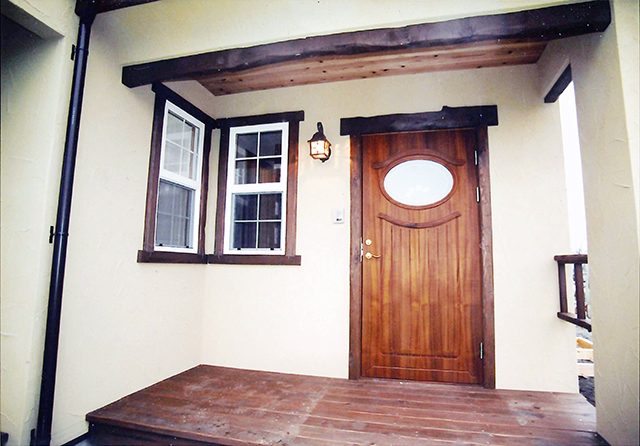 外壁の飾りや窓枠,破風や手摺、内部の枠などの木部をすべてを現場で1本1本削りながらアンティークな雰囲気に仕上げました。