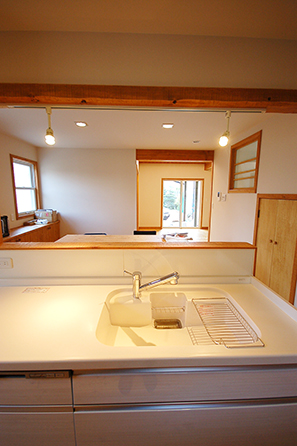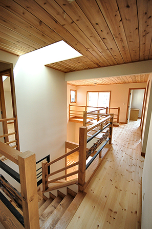 1階のスペースも階段を中心に水回りスペースまで回廊で繋がります.