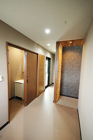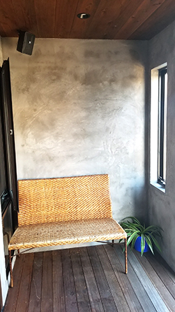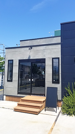 2021年、ポーチ部分を室内空間にリノベーションしました。内装はモルタルの塗り放しでインダストリアルな雰囲気にしました。入口には自動ドアを設置。このスペースを利用して2022年2月、この建物は高級食パン専門店嵜本甲府昭和店に生まれ変わりました。