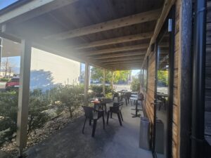 昼間、このテラス席でゆっくりお茶やランチを楽しんでください。