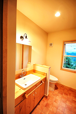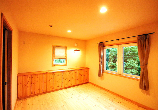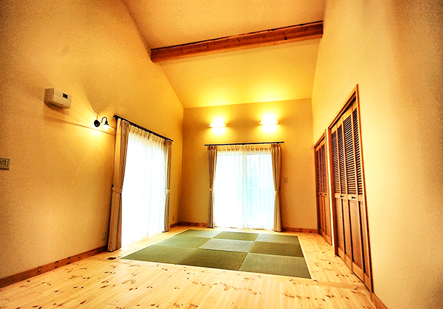 2階の寝室,浴室,プライベートバルコニーからは大月の山々と夜景を眺められるように。